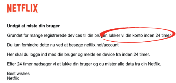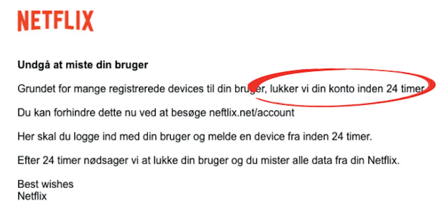 Virksomheder som Facebook eller Netflix, din bank eller offentlige myndigheder vil aldrig bede dig om at udlevere dine oplysninger via en helt almindelig e-mail.