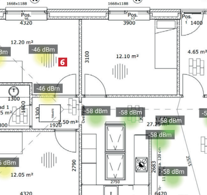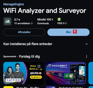 Vi har her brugt Android-app’en WiFi Analyzer and Surveyor, som måler styrken på det trådløse signal fra routeren.