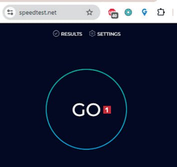 Åbn din browser og gå ind på speedtest.net og klik på GO 1.