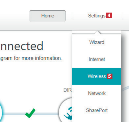 Klik her på Settings 4, og vælg Wireless 5. Vær opmærksom på, at punkterne kan se anderledes ud og hedde noget andet på din router.