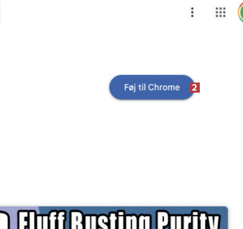 Du føres til en udvidelsesbutik i din browser. I Chrome klikker du på Føj til Chrome 2 fulgt af Tilføj udvidelsen.