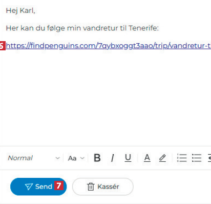 Vil dine venner og familiemedlemmer gerne følge dine oplevelser på rejsen, kan du sende dem et link til din rejse.