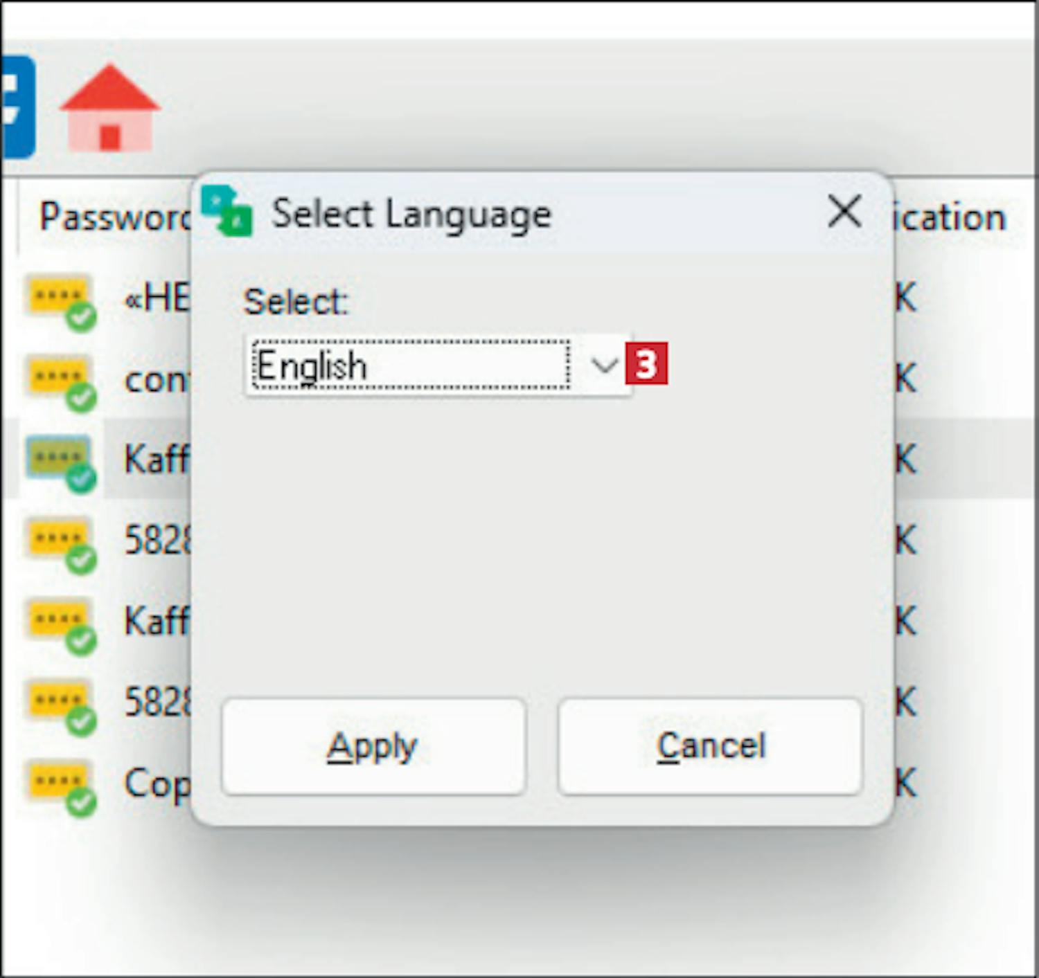 Når du kører SterJo Wireless Passwords for første gang, er menuerne i programmet på engelsk. Du kan dog skifte programmets sprog til dansk, og det kan være en god idé at gøre som det første, når du har installeret programmet.
