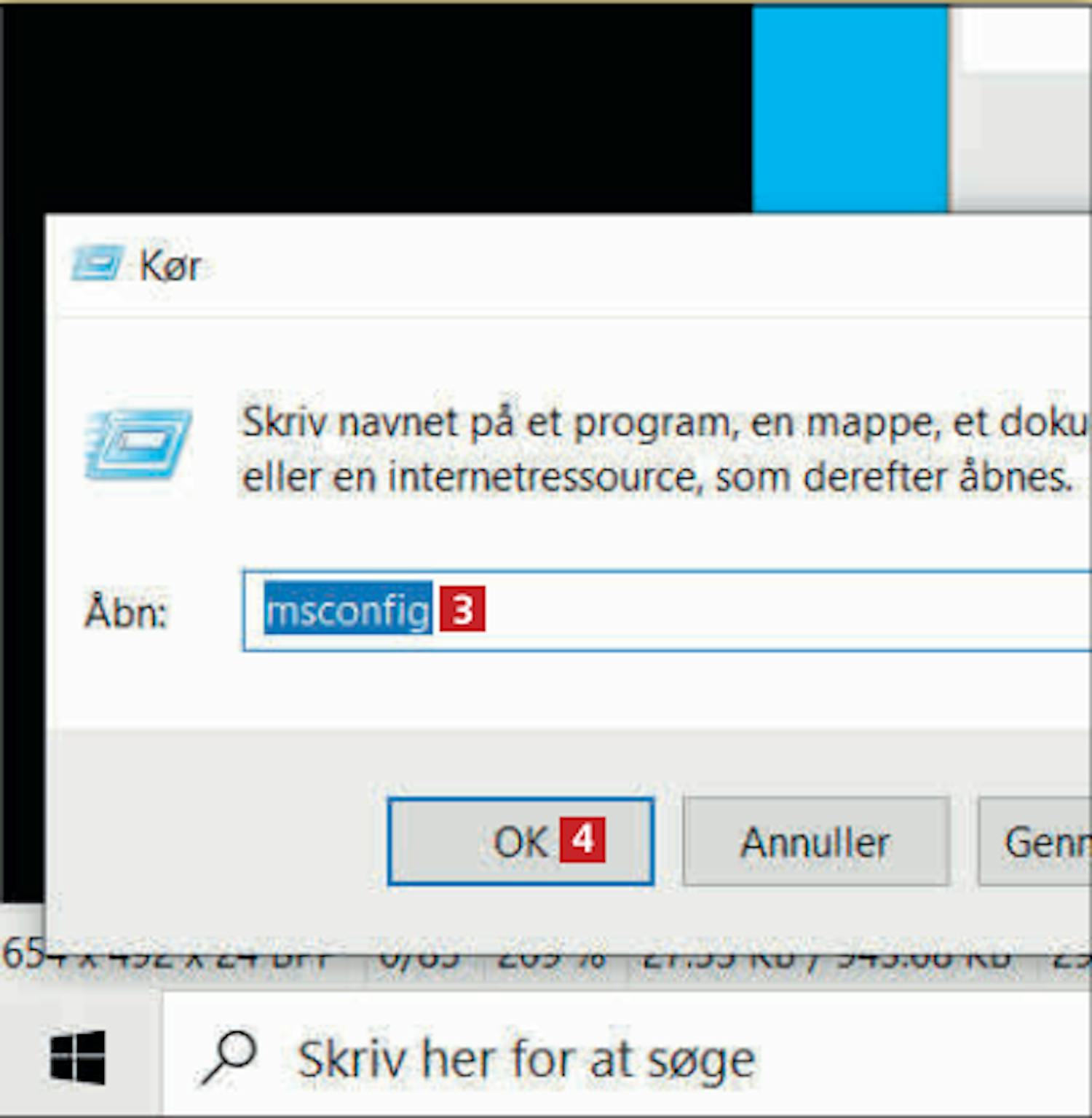 Skriv nu msconfig 3, og tryk på OK 4 .
