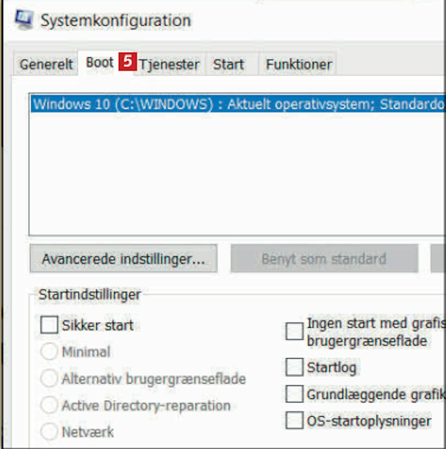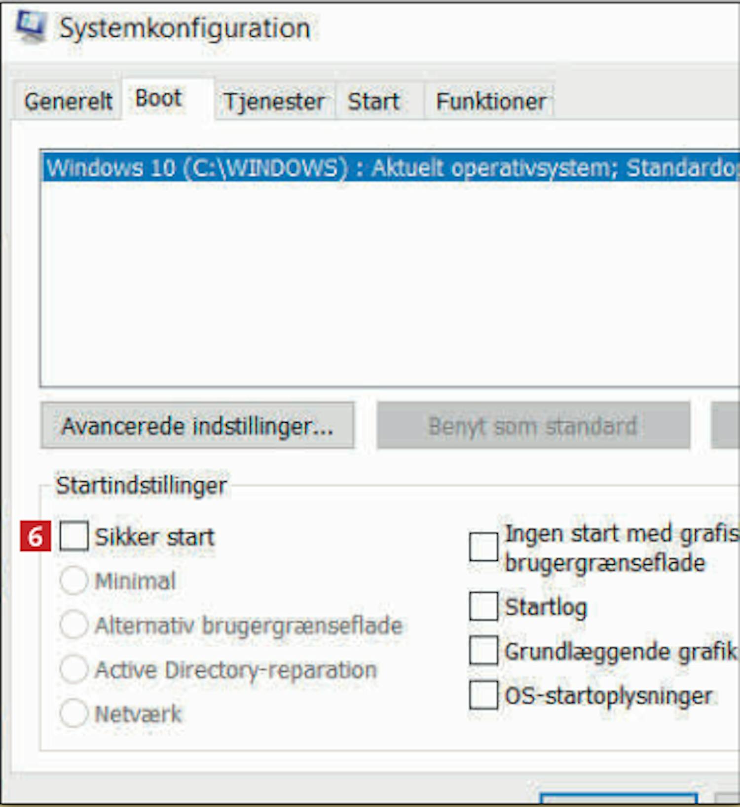 Du skal nu fjerne markeringen ved Sikker start 6.