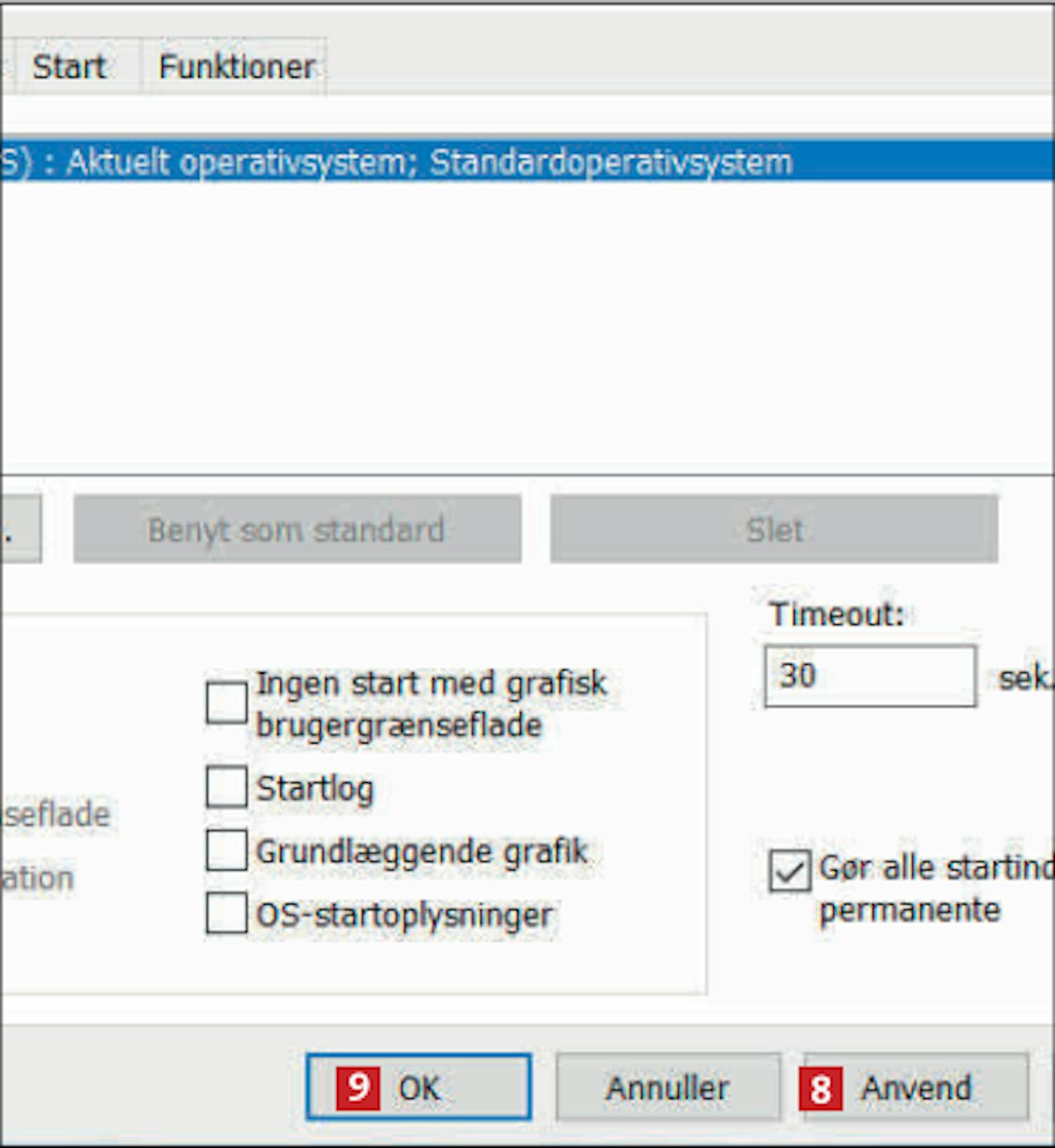 Desuden skal du markere Gør alle startindstillinger permanente 7 .