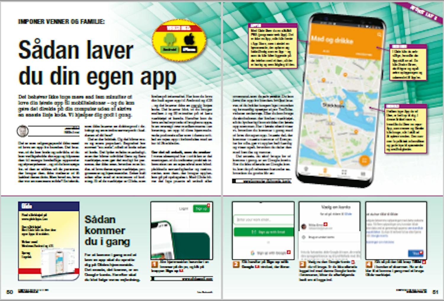 Her i første afsnit viser vi, hvordan du kommer i gang med at lave din egen app. I næste del, der kommer i næste nummer af Komputer for alle, gør vi app’en helt færdig og viser også, hvordan du deler den med familie og venner. Det eneste, du skal bruge for at komme i gang, er en Google-konto. Har du ikke allerede en Google-konto, kan du på adressen herunder se, hvordan du gratis får en: www.komputer.dk/google-konto