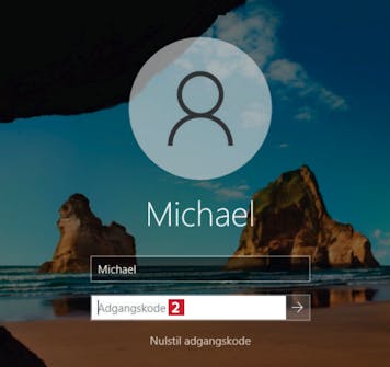 Til sidst dukker låseskærmen op med dit brugernavn fra din normale pc. Indtast nu din sædvanlige adgangskode 2, og tryk på Enter.
