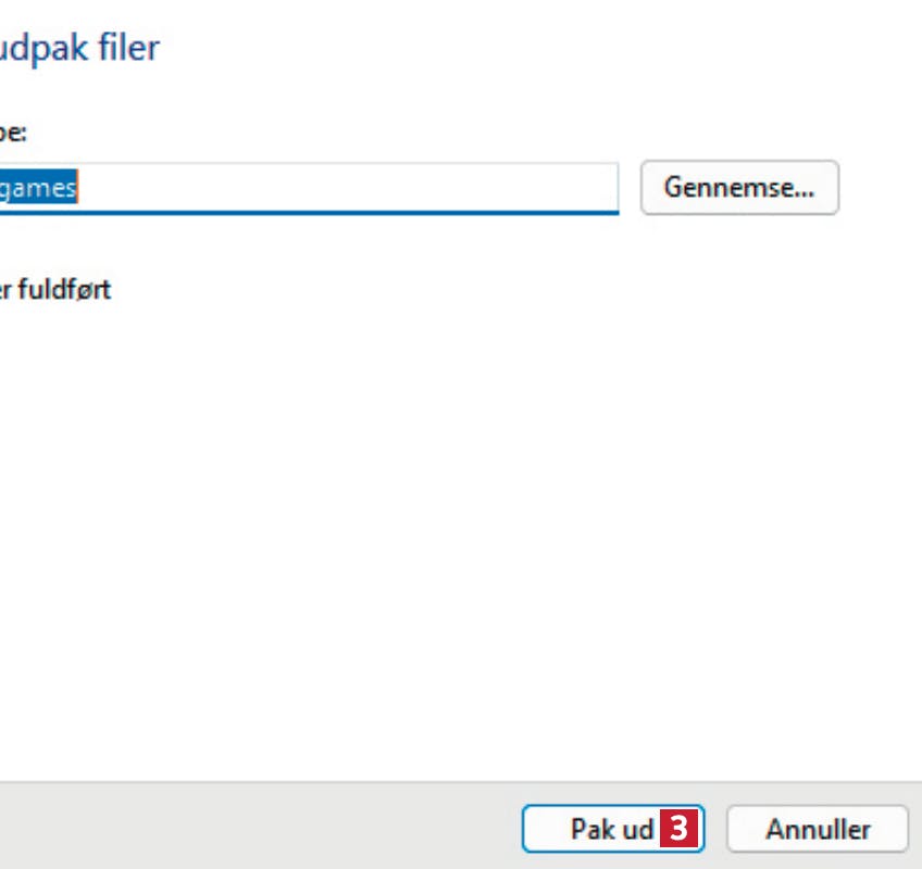 Det starter en lille guide, hvor du skal klikke på Pak ud 3. Så gemmes de udpakkede filer i en mappe, der hedder det samme som selve zip-filen, du pakker ud.