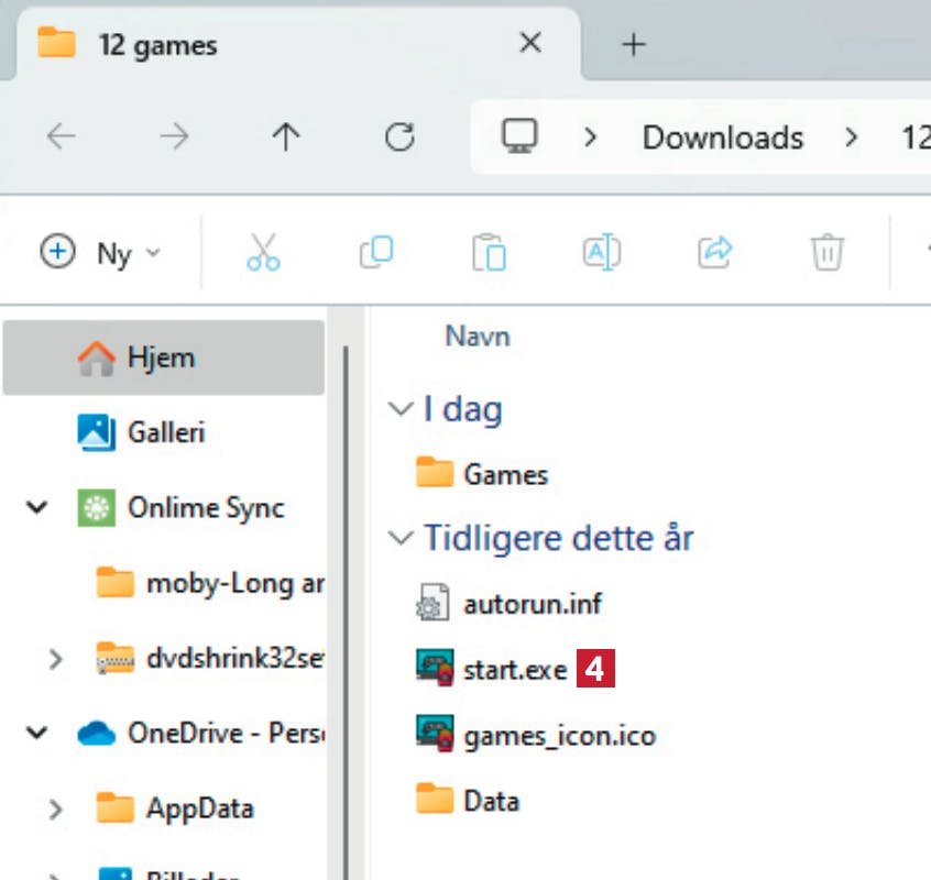 Åbn den oprettede mappe. Her skal du dobbeltklikke på start.exe 4 for at starte den indbyggede menu til spillene.