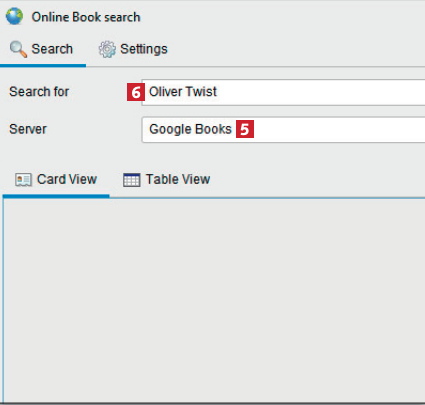 Ved at bruge Data Crows onlineservere kan du nemt tilføje bøger til dit katalog. Der er tre forskellige servere, du kan bruge, men standardserveren Google Books fungerer bedst.