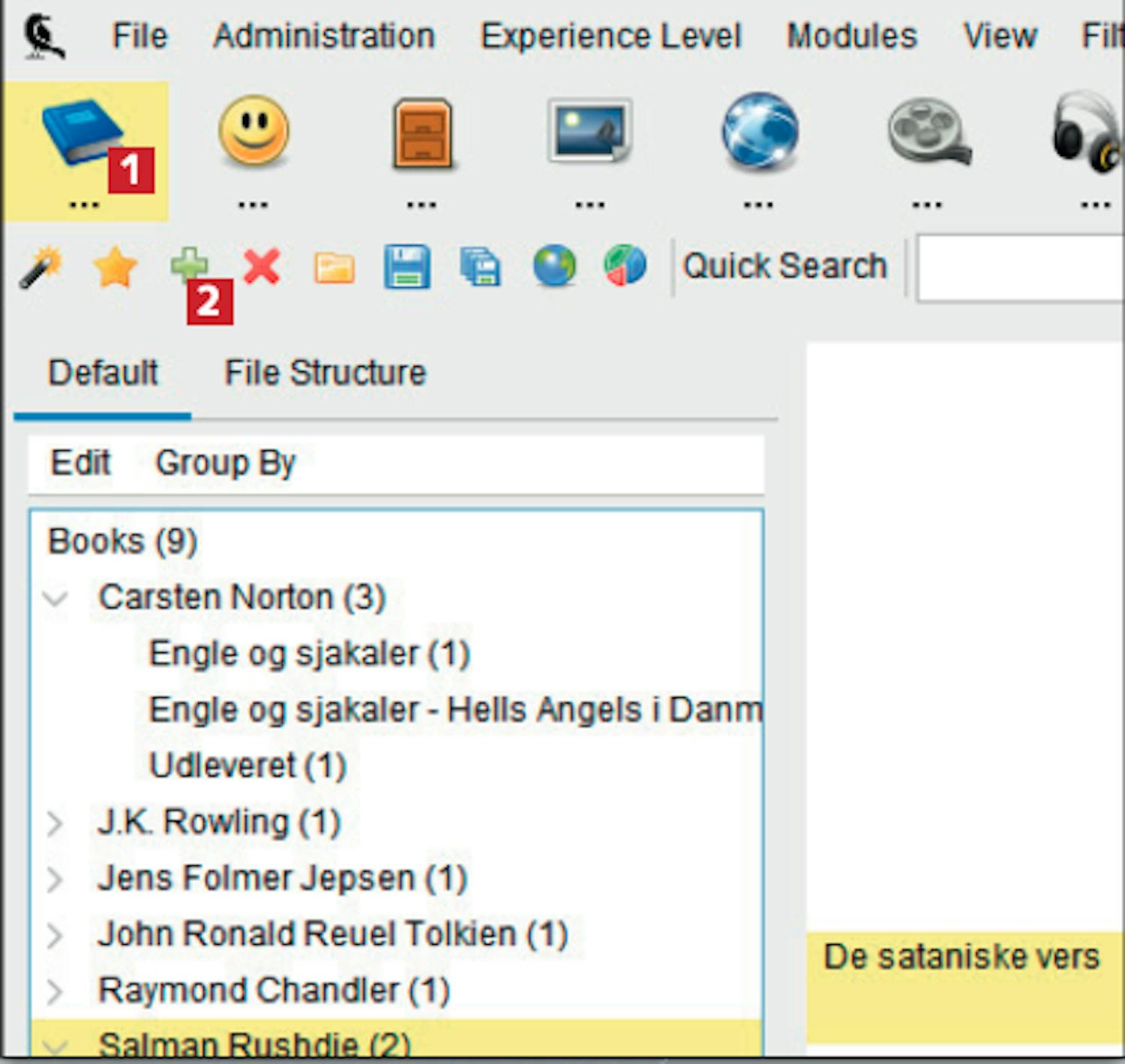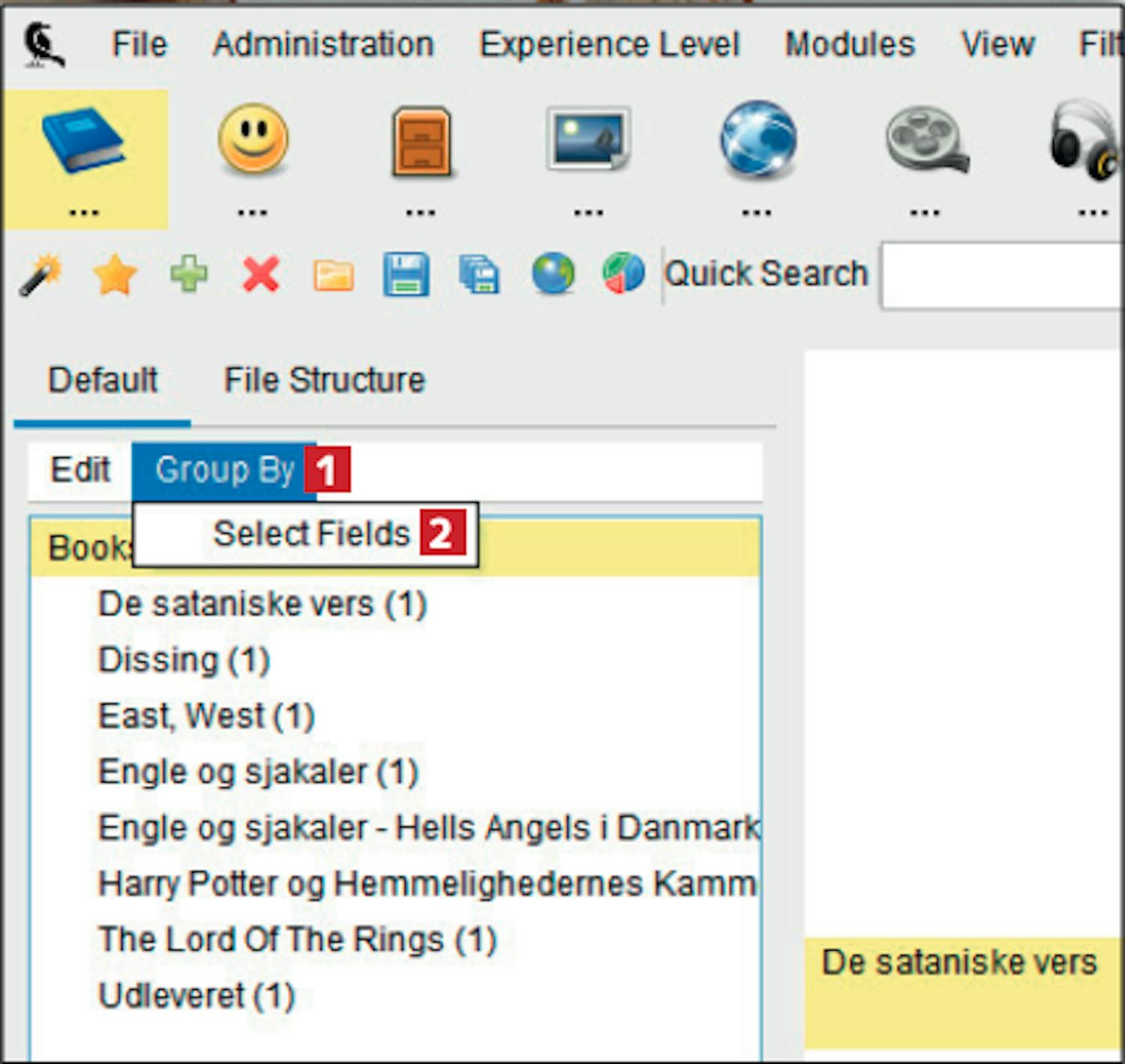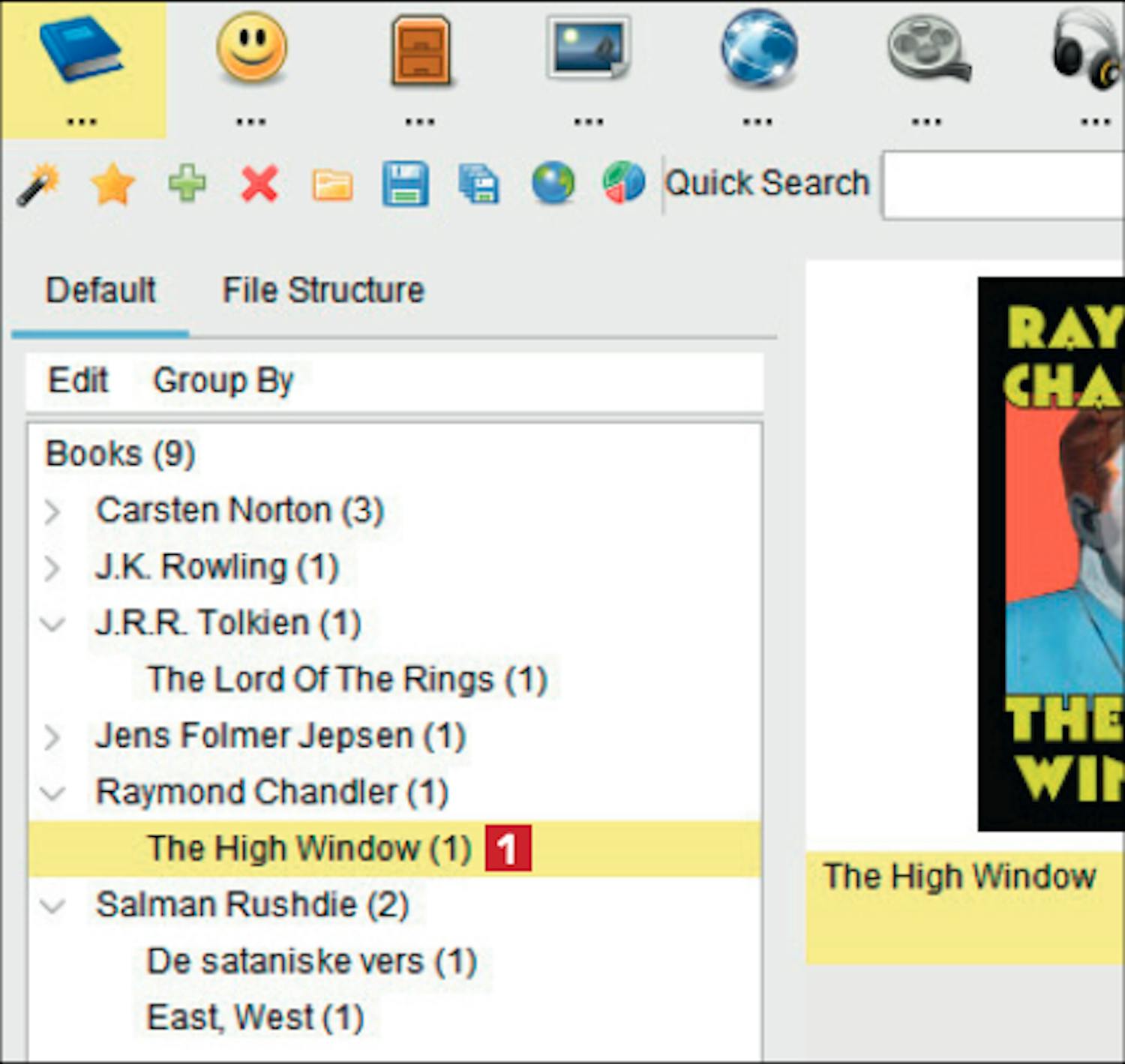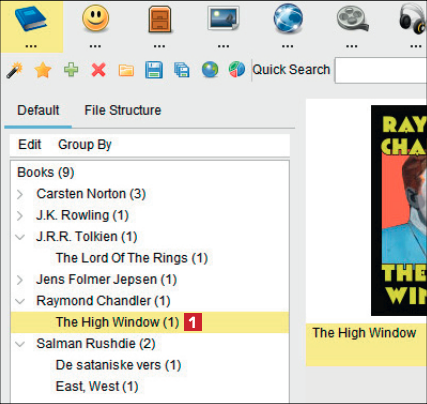 Der findes flere forskellige måder, bøgerne i kataloget kan sorteres på. Fx kan bøgerne sorteres efter forfatter, og således kan du opklare, hvilke bøger du har stående af den konkrete forfatter.