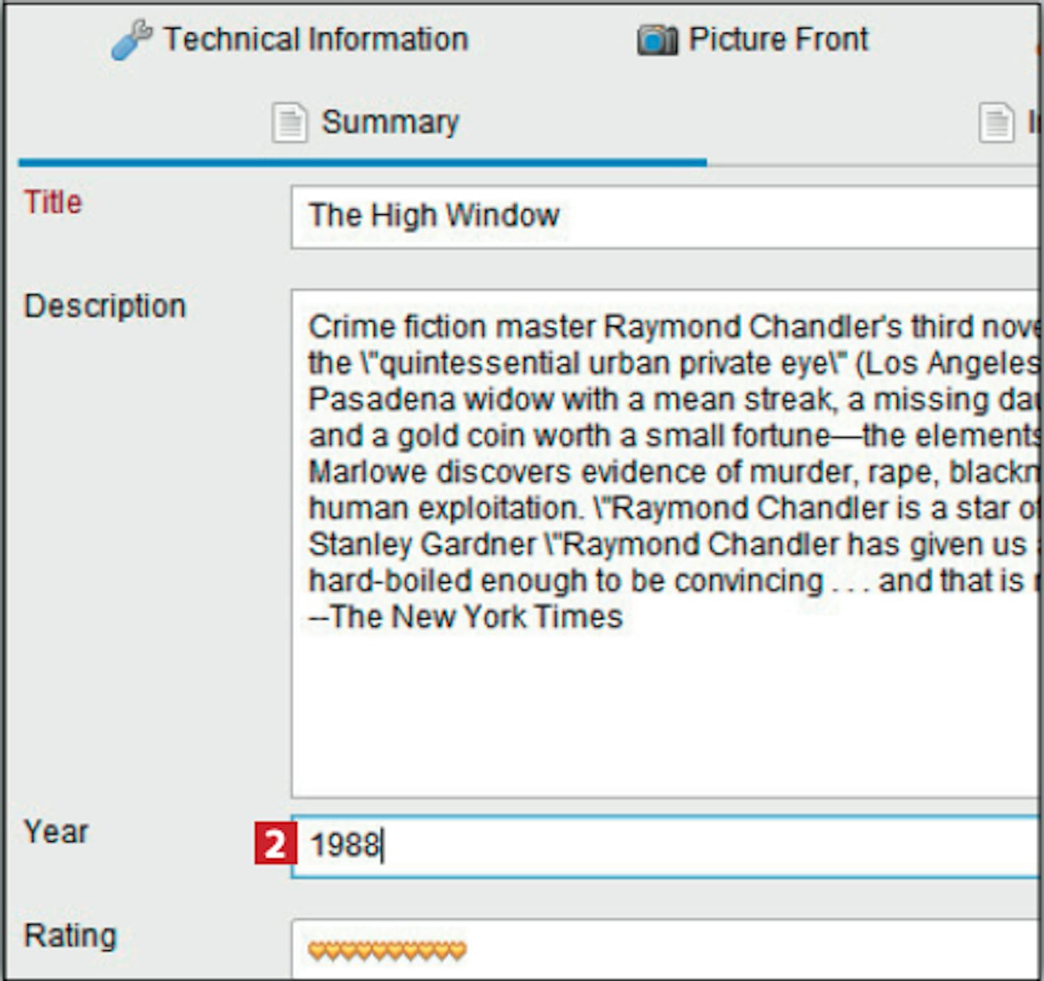 Hvis du vil redigere oplysninger om en tilføjet bog og fx tilføje et udgivelsesår, er det ganske let at gøre i Data Crow.