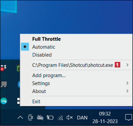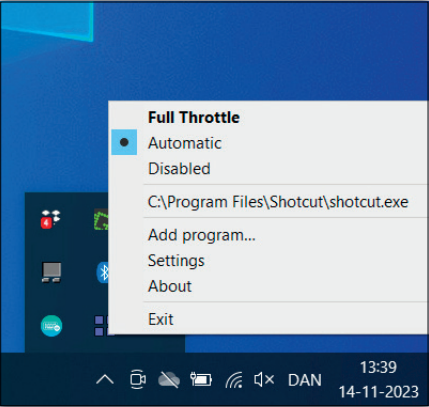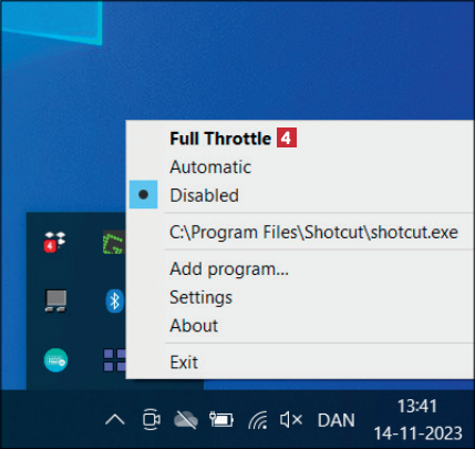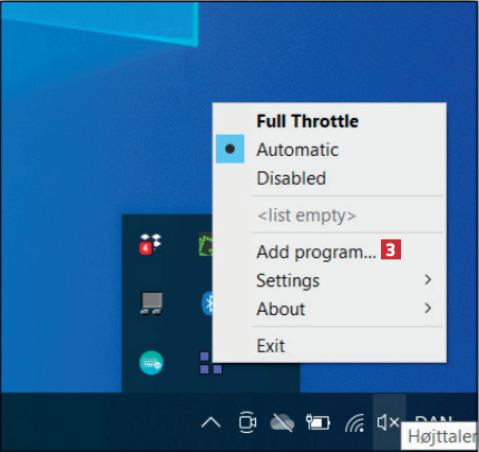 Vil du helt selv bestemme, hvornår Full Throttle Override skal tilføje ekstra CPU-kræfter til et program, kan du nemt slå Full Throttle Override til og fra, når det passer dig.
