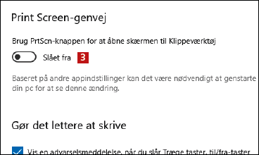Den allernemmeste måde at tage skærmbilleder på med Greenshot er at bruge tastaturets Print Screentast som genvej – så skal du bare trykke på Print Screen for at tage et billede af skærmen. Din computer er dog som udgangspunkt typisk indstillet sådan, at den tager skærmbilleder med Windows’ indbyggede screen-shot-værktøj, når du trykker på Print Screen-tasten. Det betyder altså, at genvejen allerede er optaget”. Vil du i stedet have Print Screentasten til at åbne Greenshot, skal du derfor åbne indstillingerne i Windows og gøre Print Screen-tasten “ledig”, før du installerer Greenshot. Her i boksen viser vi, hvordan du gør det. Har du derimod et andet installeret program, der bruger Print Screen-tasten, vil du måske alligevel opleve, at tasten ikke virker i Greenshot. Vi har derfor lavet et lille værktøj, der sikrer, at Print Screen tasten automatisk bliver ledig. Du kan hente værktøjet og en guide til det her: www.komputer.dk/printscreen