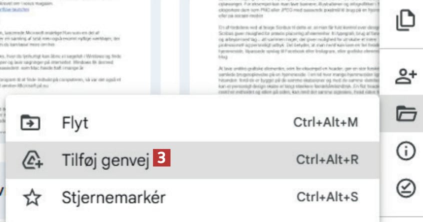 Åbn drive.google.com i en browser. Højreklik på en fil 1, du vil lave en genvej til. Vælg Organiser 2.