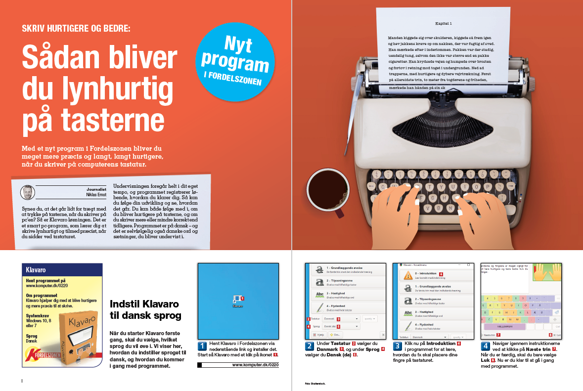 Det er et smart pc-program, som lærer dig at skrive lynhurtigt og præcist, når du sidder ved tastaturet. Undervisningen foregår i dit eget tempo, og programmet registrerer løbende, hvordan du klarer dig. Så kan du følge din udvikling og se, hvordan det går.