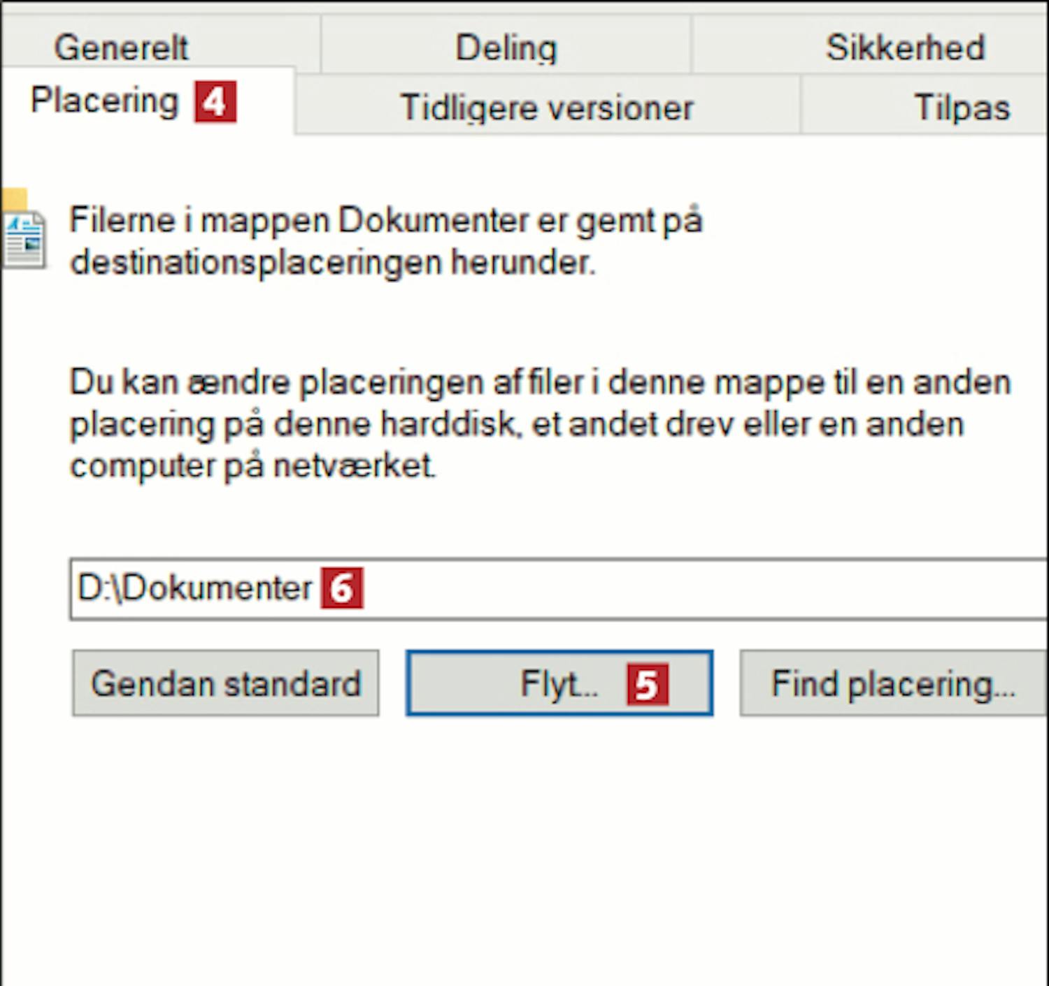 Du er nu klar til at flytte systemmappen “Dokumenter” til det nye drev, så den ikke er blandet sammen med Windows-installationen. Her viser vi, hvordan du gør: