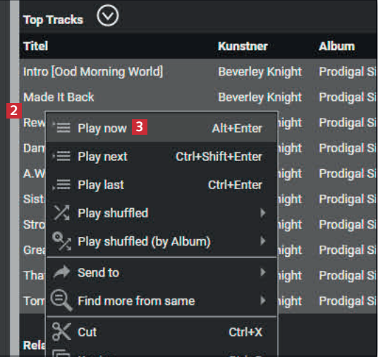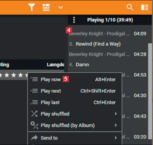Markér det eller de numre, du vil medtage på listen og højreklik på de valgte numre 2. Vælg Play now 3.