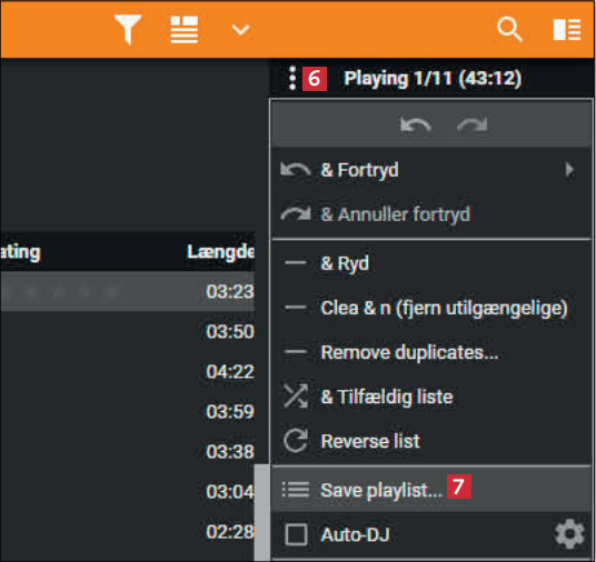 Når du er tilfreds med indholdet af spillelisten, kan du gemme den til senere brug. Klik på de tre prikker 6 og vælg Save playlist… 7.