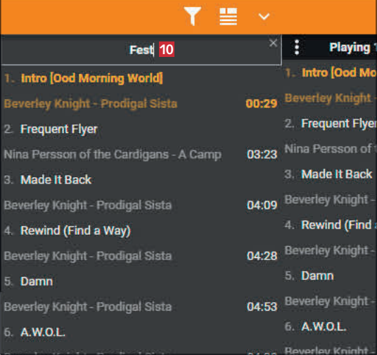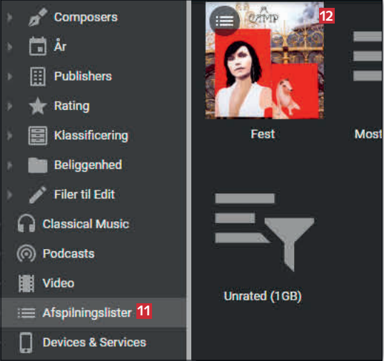 Numrene tilføjes nu til spillelisten, som vises yderst til højre i programmet 4. Fortsæt på samme måde med at tilføje yderligere kunstnere og musik til listen 5.