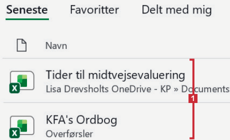 Normalt viser Excel mig en oversigt over mine seneste regneark, men nu er listen tom. Kan jeg få den tilbage?