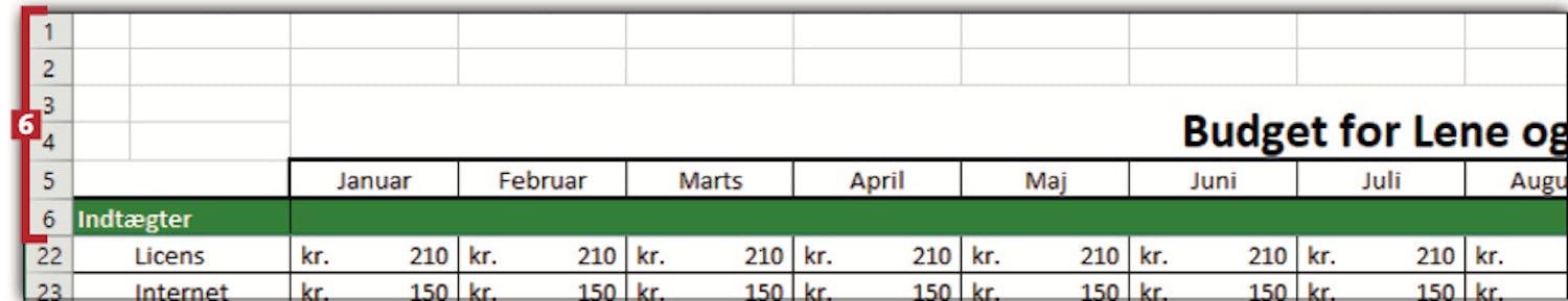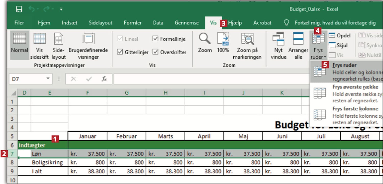 2. Det markerer hele rækken. Gå så op i menuen Vis 3, klik på