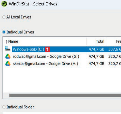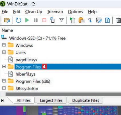 Her bruger vi WinDirStats flotte, grafiske overblik til at se nærmere på, hvad det egentlig er, der ligger og fylder op på harddisken.