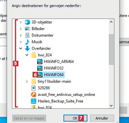 Rul mappelisten igennem 5, og klik på selve programmet 6, du vil oprette en genvej til. Klik på OK 7.
