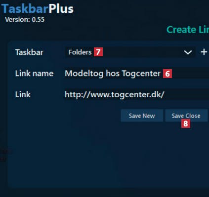 Nu kan du tilpasse genvejens navn 6 og den undergruppe 7 af genveje, den skal placeres under. Klik derefter på Save Close 8.
