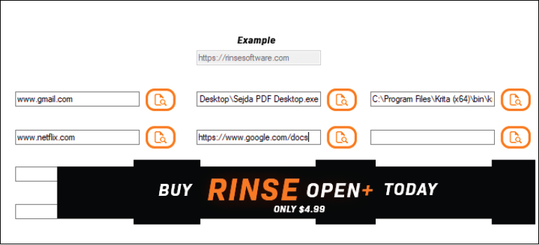 Med Rinse Open behøver du ikke åbne filer, programmer eller hjemmesider enkeltvis. I stedet kan du åbne adskillige programmer og hjemmesider på én gang.