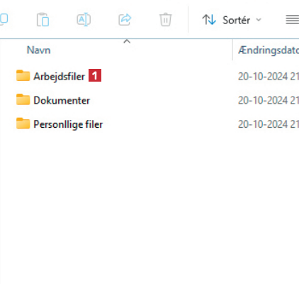 Du kan nu gå på opdagelse i de forskellige mapper på din computer. Ved hver mappe står der angivet, hvad mappen hedder, og hvor mange GB den fylder.