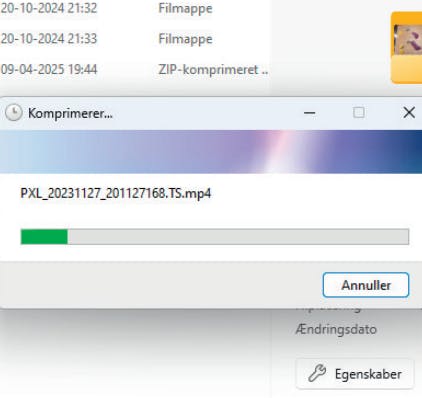 Nu går Windows i gang med at komprimere mappen. Alt efter størrelse kan det tage lidt tid. Giv den nye zip-fil et navn og tryk så på Enter på tastaturet.