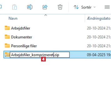 Giv nu mappen et navn, fx navnet på den oprindelige mappe og skriv så komprimeret 4 til sidst, så den er nem at finde igen.