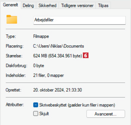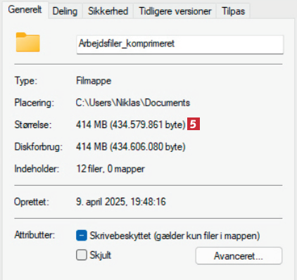 Nu er mappen komprimeret. Denne mappe har nu størrelsen 414 MB 5. Særligt ved billeder, programfiler og video kan der spares meget plads ved at komprimere.