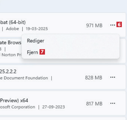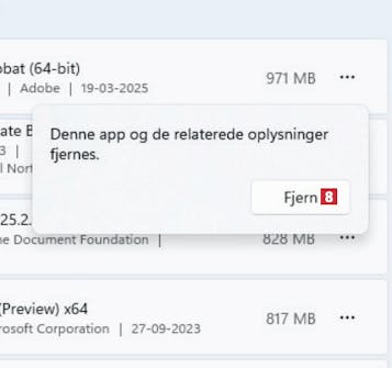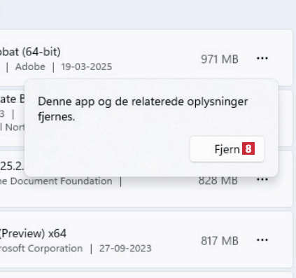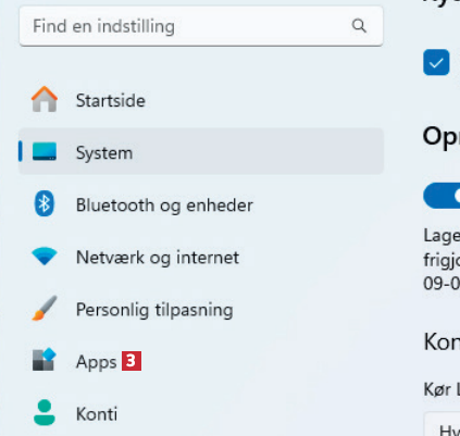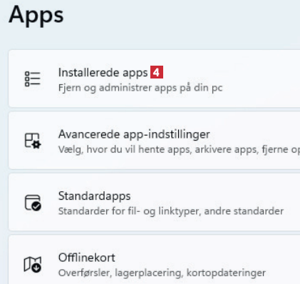 I Windows 11 skal du klikke på Installerede apps 4, mens det i Windows 10 hedder Apps og funktioner.