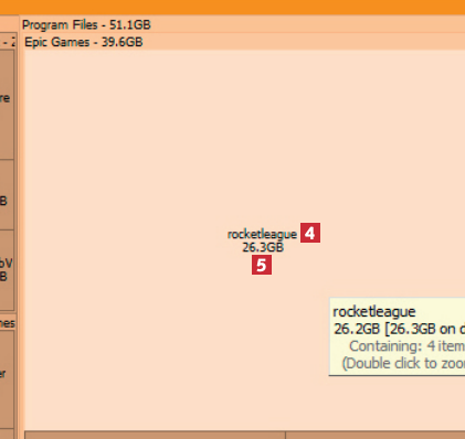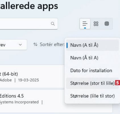 I højre side skal du vælge visningen Størrelse (stor til lille) 5 for at se de største programmer øverst i listen.