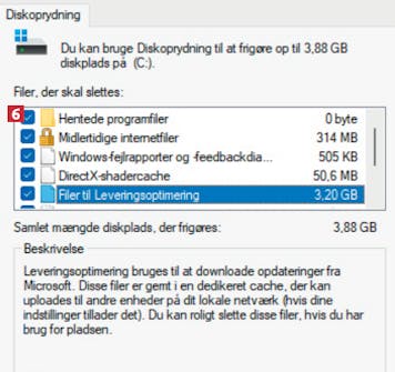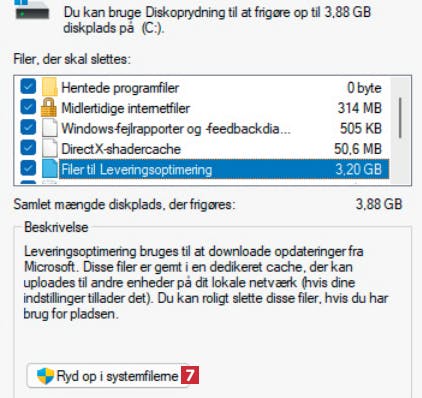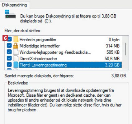 Sæt flueben ud for de typer filer, du vil slette 6. Vi anbefaler, at du markerer alle kategorier for at få mest muligt plads.