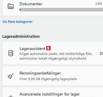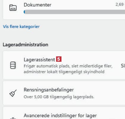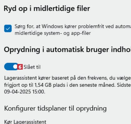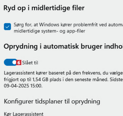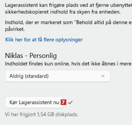 Klik herefter på knappen Kør Lagerassistent nu 7. Når det er gjort, starter lagerassistenten og rydder op på din computer.