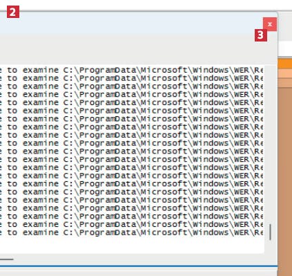 Når programmet er færdigt med at scanne din harddisk, kan du lukke vinduet 2 ved at klikke på krydset 3 i hjørnet.