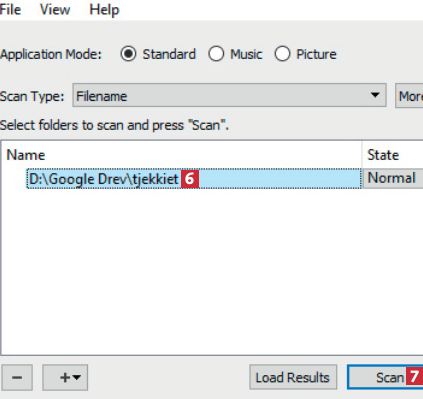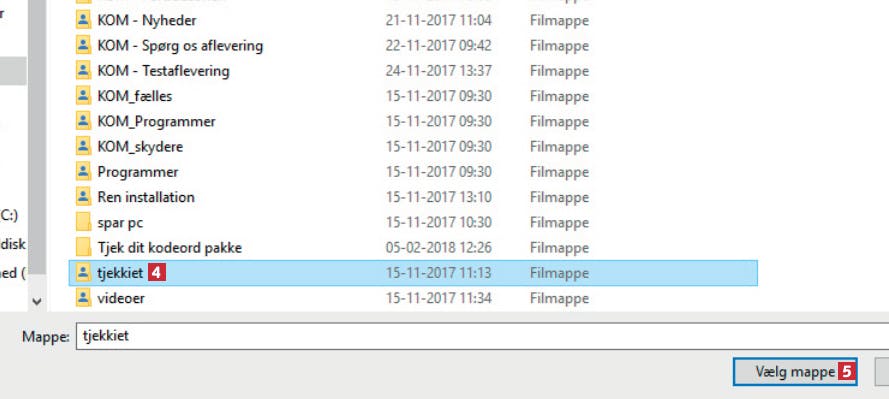 Vælg nu en mappe, du vil scanne 4, fulgt af Vælg mappe 5. Du kan naturligvis også scanne flere mapper. Det gør du ved at holde Shift-tasten nede og så markere de mapper, der skal scannes.