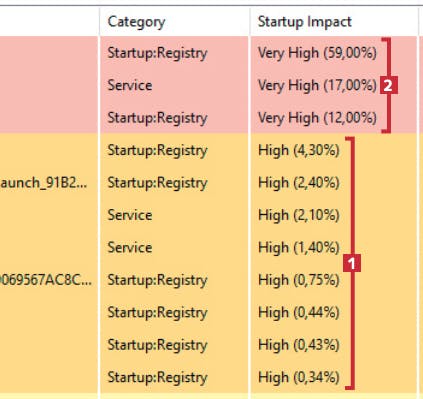 Start med at tage et kig på målingen, du tidligere lavede med programmet. Kig særligt efter High 1 og Very High 2 i oversigten. Det er disse programmer, der særligt sløver pc’en.