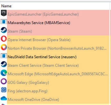 Her har vi deaktiveret en hel række programmer (dem med grå bogstaver) og prøver derefter at teste opstarten igen.