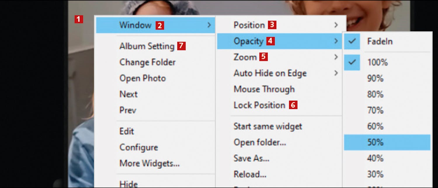 Ved at højreklikke på en widget får du mulighed for at finindstille den. I dette eksempel ændrer vi widget’en EkerPhotoAlbum, der dukker op som standard, når du installerer XWidget-programmet.