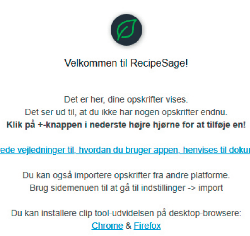 Inden du går i gang med vores grundige vejledning på dansk herunder, skal du hente RecipeSage. Det henter du i en gennemtestet og garanteret virusfri udgave direkte her fra vores hjemmeside via linket herunder:
