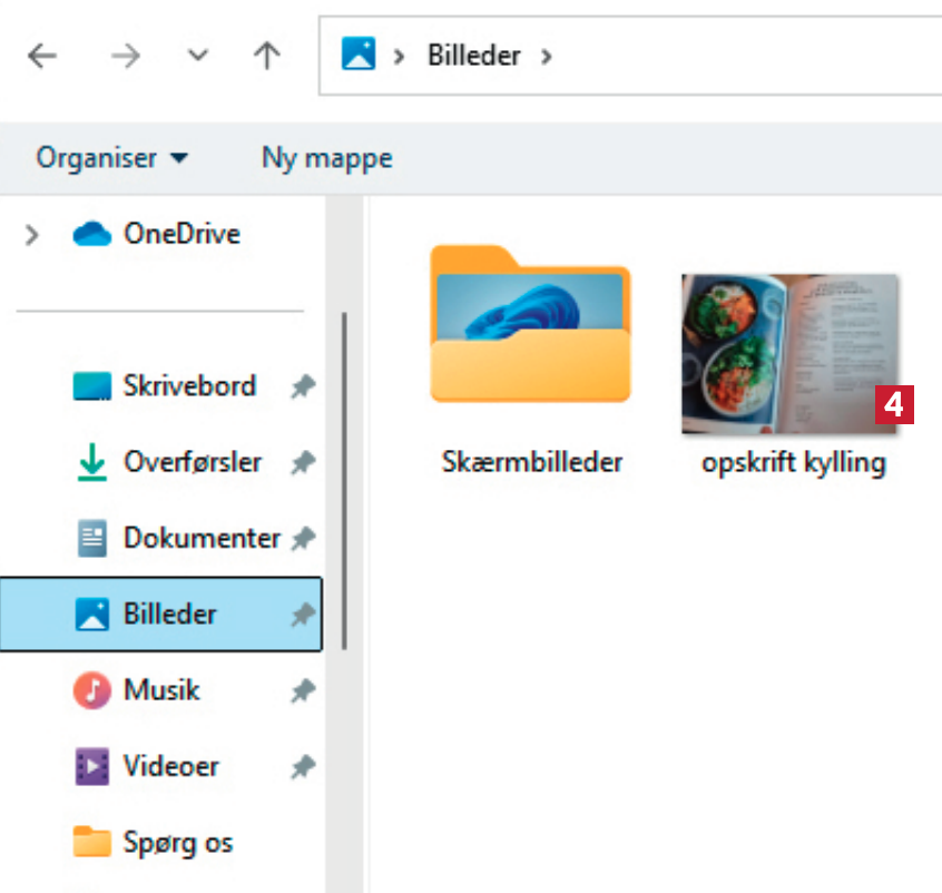 Åbn først hjemmesiden med den opskrift, du gerne vil gemme. Markér adressen 1, og tryk på Ctrl + C på tastaturet for at kopiere adressen til udklipsholderen.