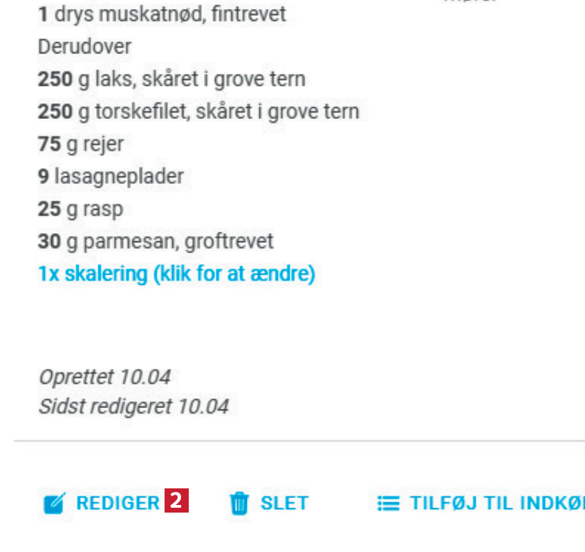Lav ændringer i en opskrift