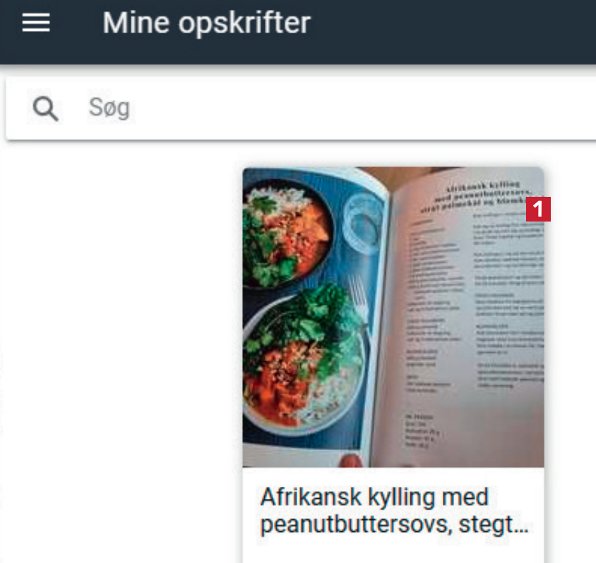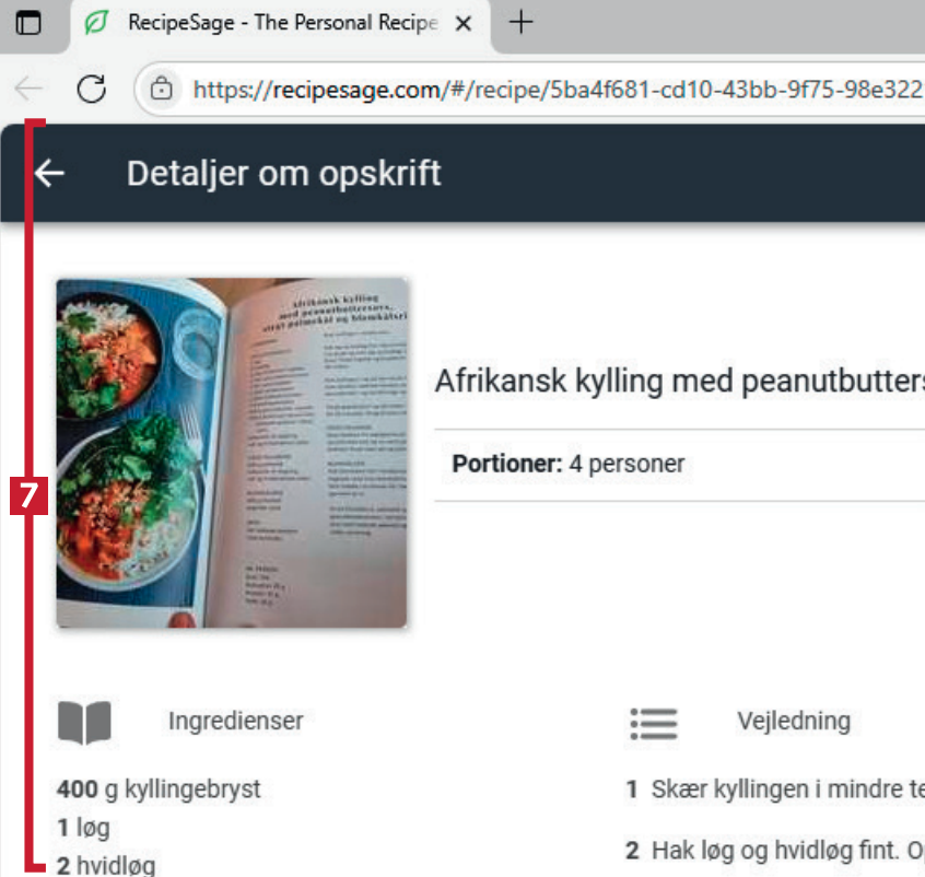 Har du et foto af en opskrift fra fx en kogebog, kan du tilføje den til RecipeSage, som vi viser her.