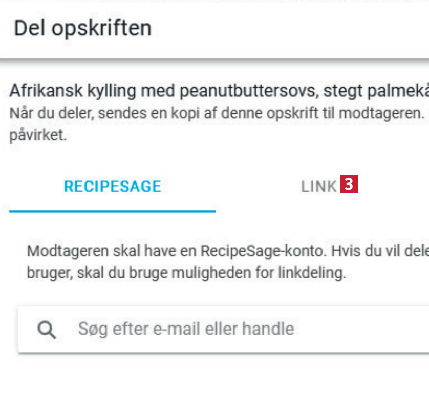 De opskrifter, du har gemt i RecipeSage, kan du nemt dele med andre – også selv om personen, du deler med, ikke selv har programmet installeret. Se her, hvordan du gør.