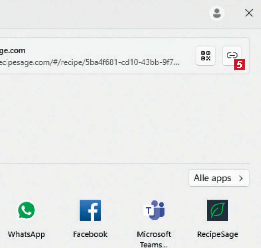 Klik på denne knap 5 i øverste højre hjørne af det vindue, der åbner. Linket bliver derefter kopieret til udklipsholderen i Windows.